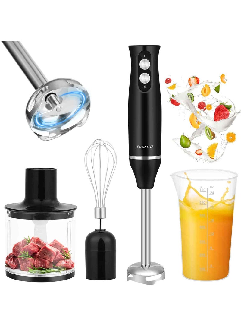 خلاط يدوي مع ملحقات. الوظائف: خلط وطحن الطعام.